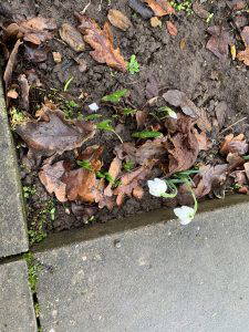 In January we had bad weather in the sheltered Midlands: (not counting the 5 minutes of snow which melted as it fell), bitterly cold winds and icy rain for several consecutive days.During this time I didn’t venture down the garden, limited myself to walking into town by the gutters to avoid the untreated roads and pavements.